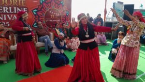 मसूरी। विंटर लाइन कार्निवाल के तहत शहर के विभिन्न हिस्सों में सांस्कृतिक कार्यक्रमों का आयोजन किया गया। जिसमें पर्यटकों ने भी जमकर आंनद लिया व लोक कलाकारों के साथ नृत्य किया।